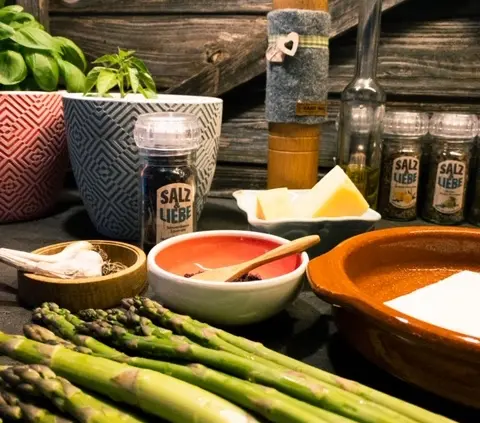 Dieses Rezept ist absolut köstlich und mega schnell zubereitet. Die Kombination von grünem Spargel, Schafskäse, Parmesan und Schwarzbeere-Lavendel Salz ist wirklich traumhaft. Das ganze dann mit goldgelbem Käse gratiniert verspricht ein wahres Geschmacks Erlebnis.